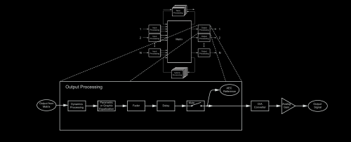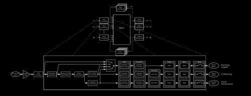 The most interesting thing on here is the mux that produces the recording, conference and reinforcement outputs, since this is something different than a normal digital mixer.